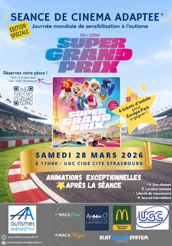 Dans le cadre de la Semaine de l’autisme 2026, l’association Autismes Aujourd’hui organise une séance de cinéma adaptée exceptionnelle avec la projection du film Super Grand Prix, suivie d’animations gratuites ouvertes à tous.