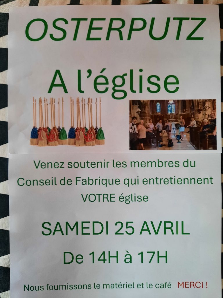 Les membres du Conseil de Fabrique vous invitent à les rejoindre pour le traditionnel grand nettoyage annuel le samedi 24, de 14h à 17h.